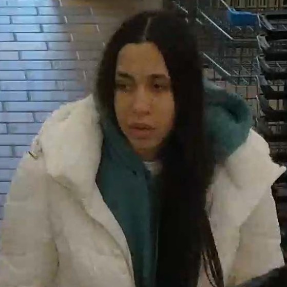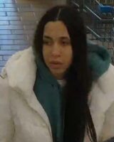 Suspect 1 – Caucasian female, black and yellow coat, black pants, distinct yellow, orange, and black Nike shoes, tie dye backpack and pink scarf.