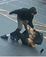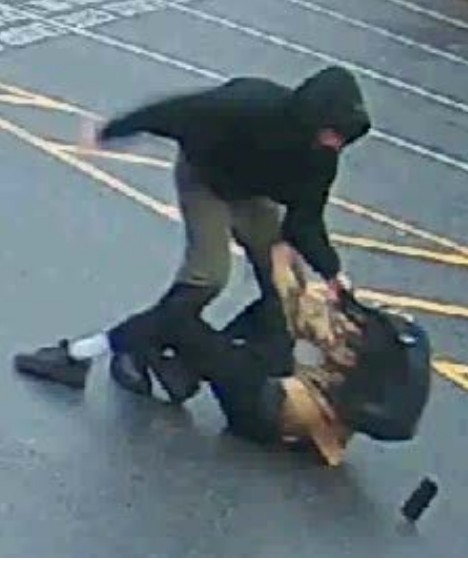 The suspect unprovokedly attacked a male victim in the presence of his young daughter. The victim was punched in the face multiple times before another passenger intervened to which resulted another fight. The suspect pushed the passenger to the ground before fleeing the scene.