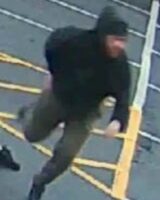 Suspect #2 – Dark pa nts, dark jacket with white writing on the front, dark shoes