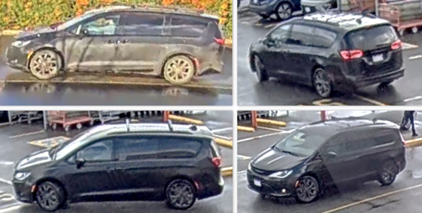 The suspects are associated to a black 2021-2026 Chrysler Grand Caravan, bearing partial BC license plate of T1L***.